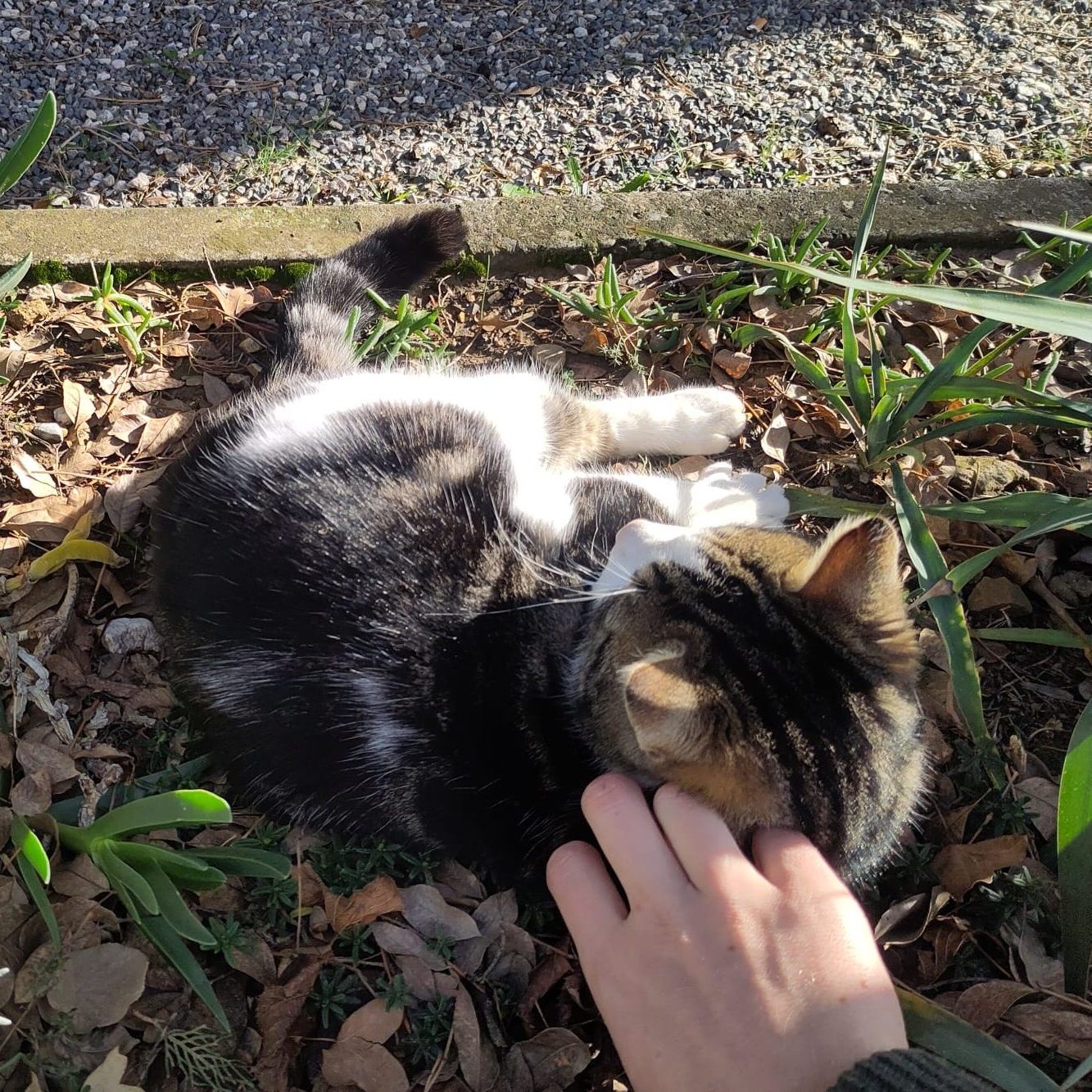 Am nächsten Tag stand noch immer der Plan mit Leo und seiner Freundin mit dem Segler nach Zadar zu schippern . Allerdings wollte er erst später am Tag los, sodass wir den Vormittag mit den beiden im Wohnzimmer der Herberge verbrachten, während die Herbergsmutter Kaffee kochte und für genügend Zigaretten sorgte. Leo lud uns noch ein, gemeinsam zu Mittag zu Essen. Das hieß aus Leos Sicht, dass die beiden Frauen kochten, während die Männer mit dem Handy kurze Werbevideos für die Herberge drehten und den Tisch deckten. Wir alle vier aßen bei bestem Sonnenschein gemeinsam auf der Terrasse mit herrlichem Blick über den Ort und die Bucht. Zum Ambiente des Gasthauses gehörte auch ein ganz süßer und zutraulicher Kater, der immer dann besonders schmusig war, wenn gegessen wurde. Nach dem Mittagessen machten wir alle einen Nachmittags-Spaziergang zur Bucht mit dem gesunkenen Schiffswrack. Der Stahlrumpf des im Zweiten Weltkrieg versenkten Schiffs reichte bis knapp unter die Wasseroberfläche und war im türkisen, klaren Wasser deutlich zu sehen.